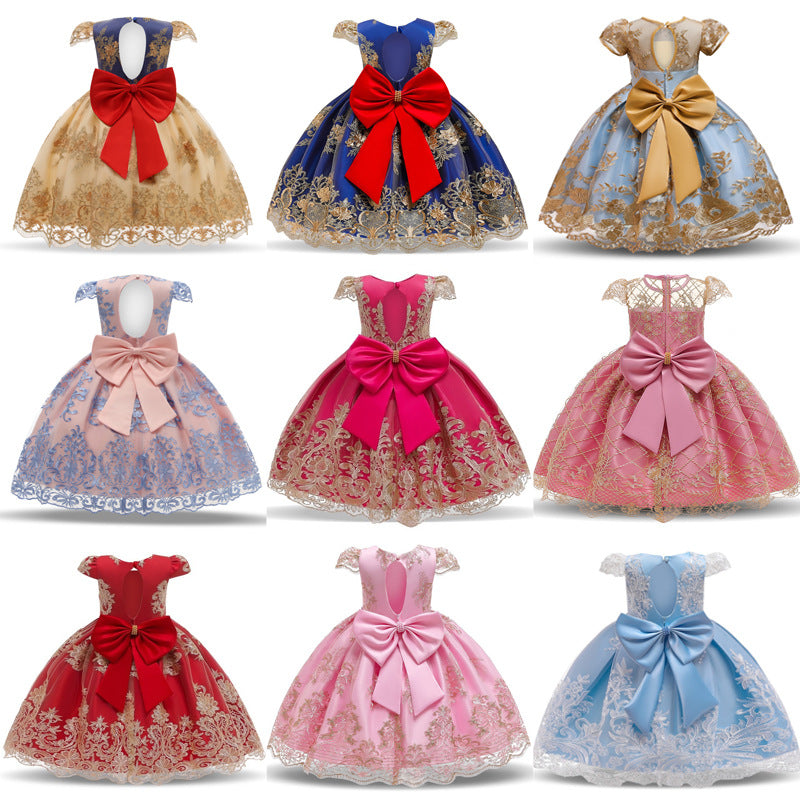 Robe de Soirée pour Fillette avec Dernier Motif en Dentelle et Satin, Modèle